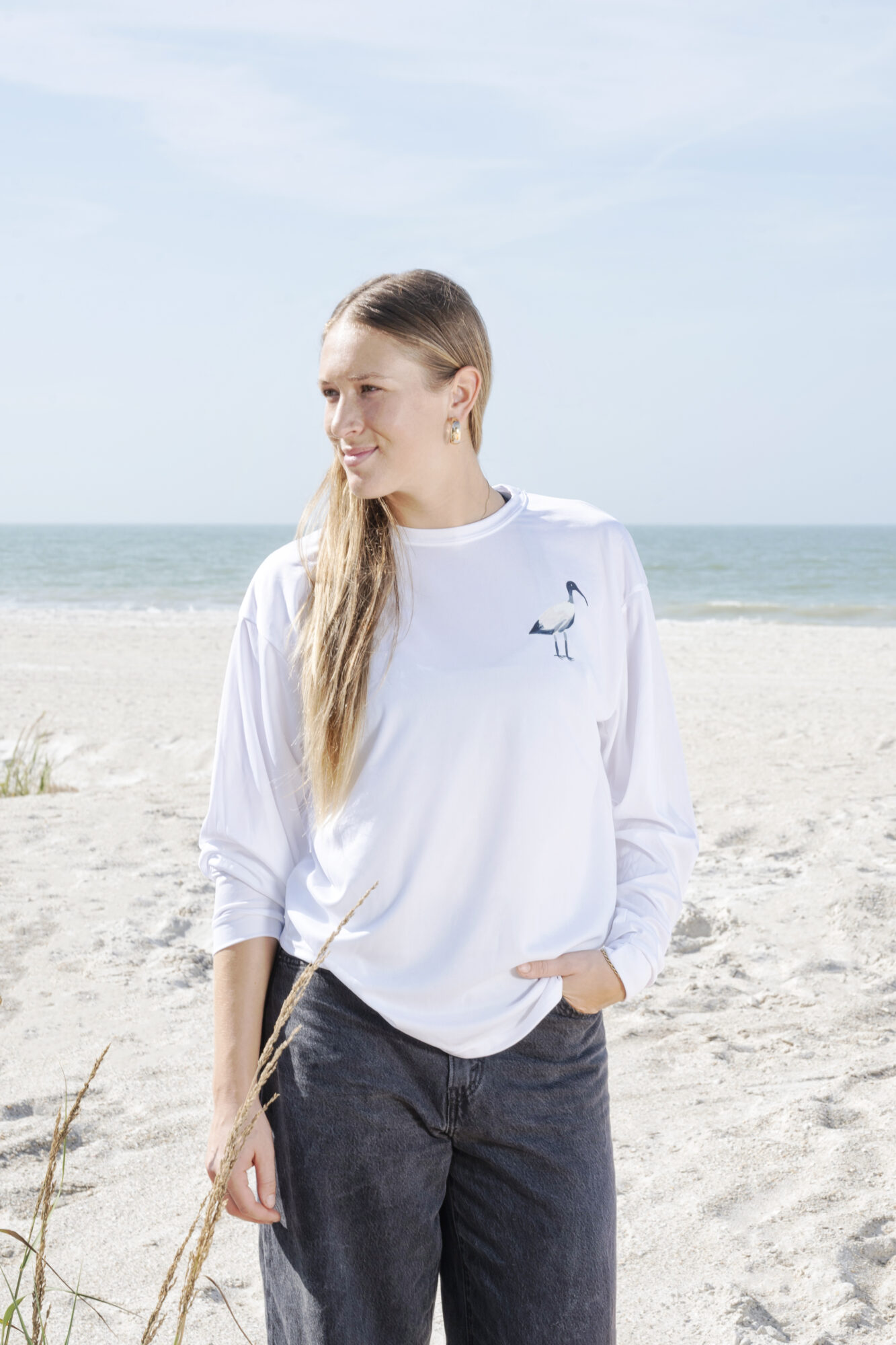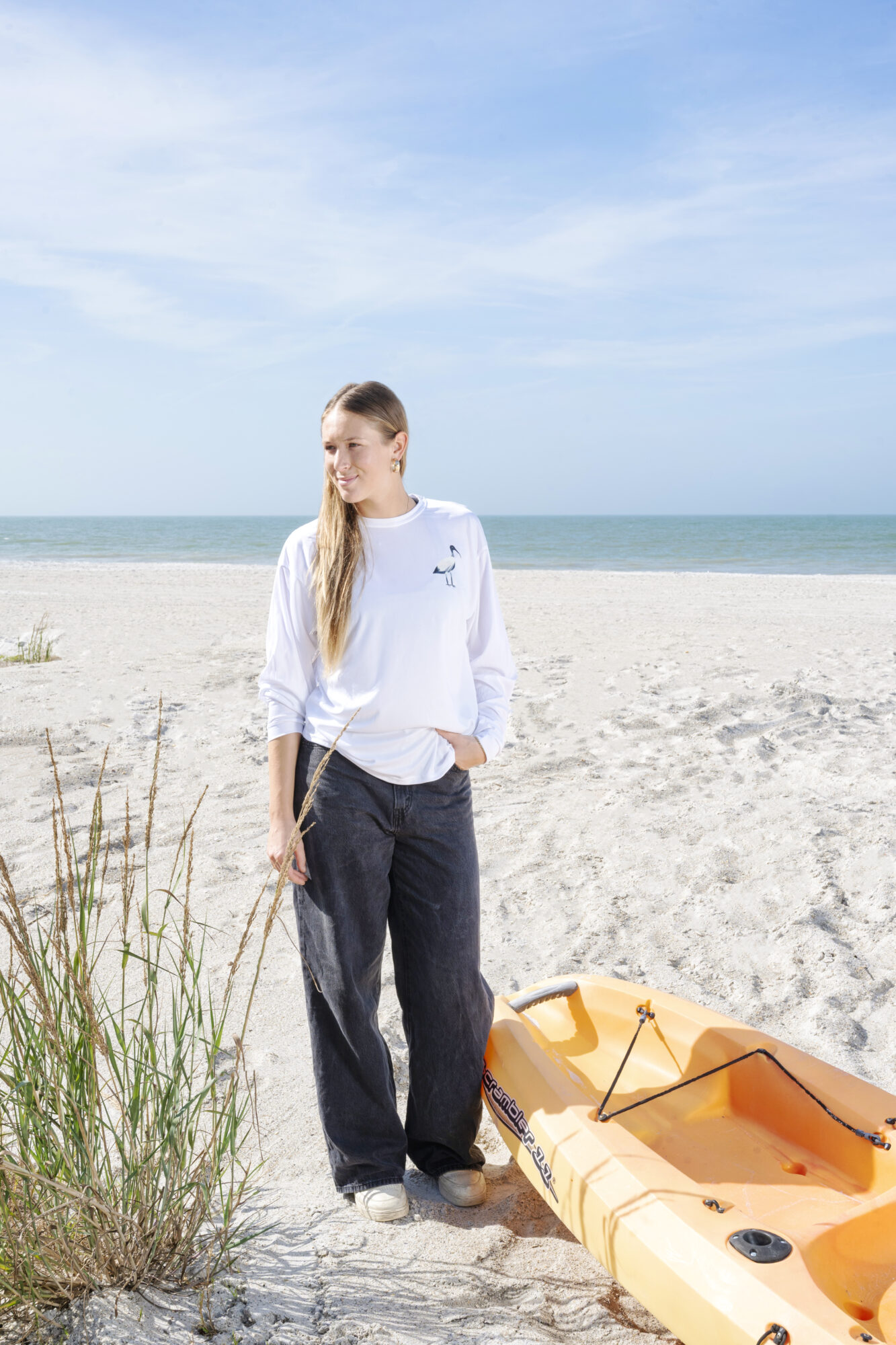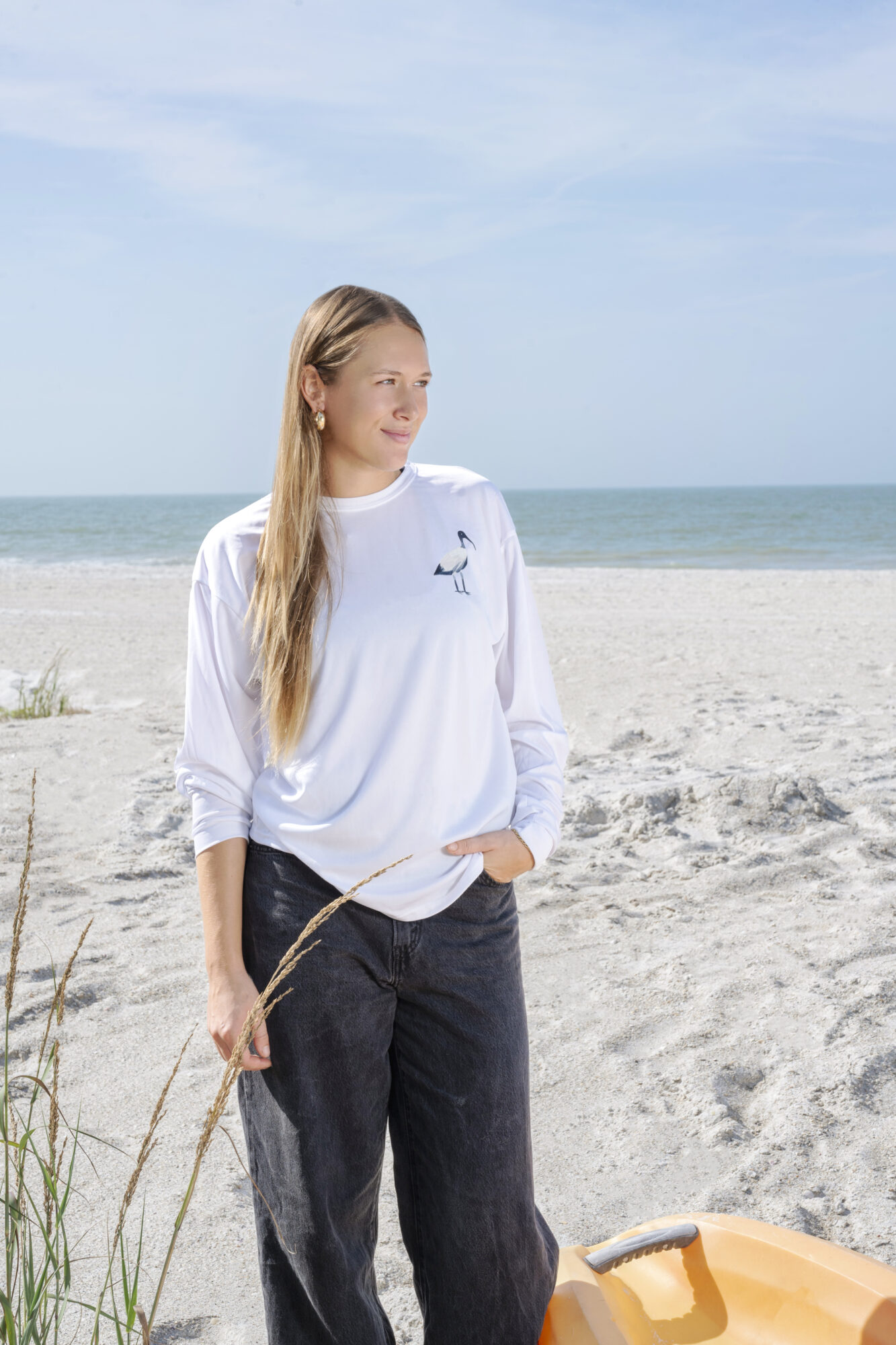 This ultra-lightweight long sleeve is made for comfort under the Florida sun, offering built-in UPF sun protection without sacrificing breathability. The soft, smooth fabric feels airy against your skin and is perfect for pool days, beach walks, boating, or anytime you want a little extra coverage with a polished, casual look.